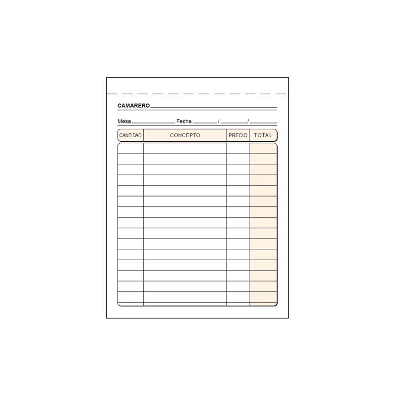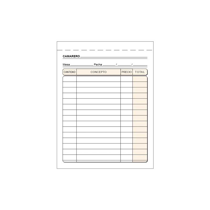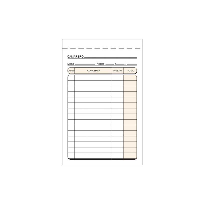 Talonario camarero Octavo natural Duplicado...