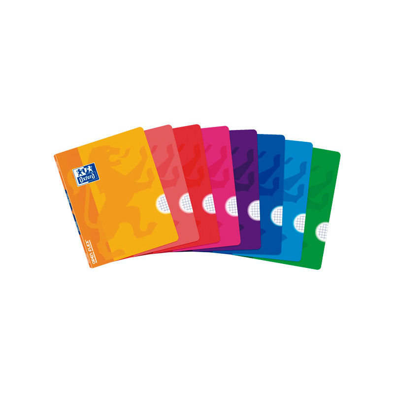 Libretas grapadas Oxford Openflex 48 hojas. Tapas de plástico con apertura 180 grados, rayado en la tapa para una fácil identificación, con margen (excepto el liso). Colores surtidos.