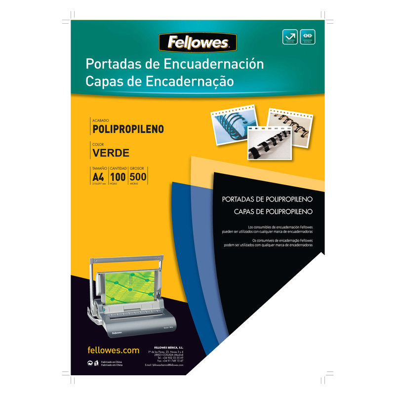 Pack de 100 portadas PP 500 Verde A4 450 micras